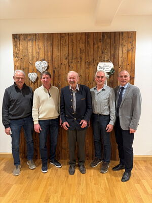 Bild: v. l. Die ausscheidenden Gemeinderäte Andreas Kronseder (3. Bgm.), Bernhard Bayerstorfer, Peter Hauer (2. Bgm.), Johanne Lanzinger und Bgm. Anton Maier.